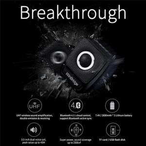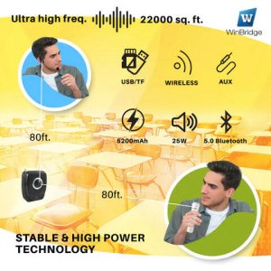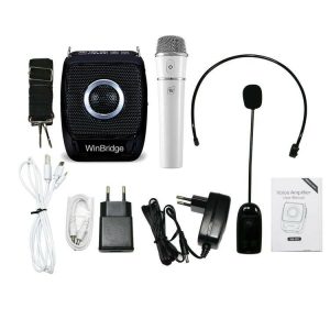 يأتي نظام WinBridge S92 Pro pa مع ميكروفون بلوتوث محمول U5 وميكروفون سماعة رأس لاسلكية U8 بدلاً من جهاز الإرسال S92 الأصلي بالإضافة إلى ميكروفون بوم، ويعطي مكبر الصوت صوتًا واضحًا جيدًا، ويمكنك بسهولة تقديم عرض تقديمي لمجموعة من 50-150 شخصًا و أن يسمع بوضوح داخل الصف او القاعة. يمكن أن يكون أيضًا مكبر صوت كاريوكي محمول.