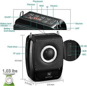 · يوفر نظام مكبر الصوت المزود بميكروفون صوتًا للاجتماعات والتدريس والتدريب لتسهيل الشرح على المعلمين والمدربين في الصف او القاعة والأنشطة الخارجية مثل حفلات الزفاف وفصول اليوغا حتى للمرشدين السياحيين وكبار السن.