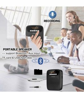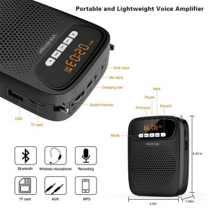 مكبر صوت محمول مع مايك متعدد الوظائف للمعلمين والمحاضرين لتسهيل حركة المعلم داخل الصف، يدعم اتصال Bluetooth بالهاتف المحمول، وبطاقة TF للتوصيل المايك لتشغيل الموسيقى والتسجيل ومشغلات AUX وUSB، ويمكن أن يعمل مكبر الصوت لمدة 12 إلى 15 ساعة بشحن واحد.